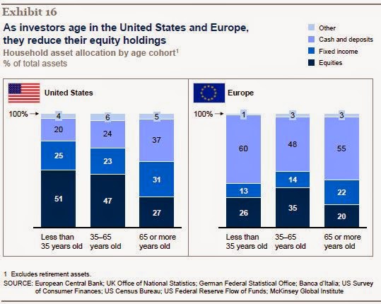 DeleteAlthough I don't think that accounts for the whole reason US investors are so heavy stocks.....while 401K assets are included in the 1st chart. The 2nd chart breaking down household allocations actually does not include retirement assets (IRAs, 401Ks etc) and the affinity towards stocks is still apparent.